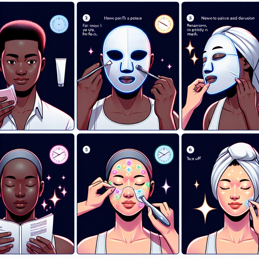 LEDマスクの基本的な使い方について説明します。まず、使用前に顔をしっかりと洗い、清潔な状態にしておくことが重要です。次に、肌の水分を軽く拭き取り、乾燥した状態にしてからマスクを装着します。LEDマスクは、肌に密着させることが効果を最大化するポイントですので、しっかりとフィットさせてください。使用時間は、製品によって異なりますが、一般的には10分から20分程度が推奨されています。長時間の使用は肌に負担をかける可能性があるため、注意が必要です。LEDマスクを使用する際は、目を閉じるか、目を保護するためのアイガードを使用することをお勧めします。光が目に直接当たると、目に負担がかかることがありますので、安全に配慮してください。使用後は、肌に残った光の効果を活かすために、保湿効果の高い化粧水や美容液を使って、しっかりとスキンケアを行いましょう。LEDマスクは毎日使用する必要はありませんが、週に2〜3回の使用が一般的です。肌の状態や効果を見ながら、適切な頻度で使用することが大切です。LEDマスクを正しく使用することで、肌のトーンが均一になり、ハリやツヤが増すことが期待できます。