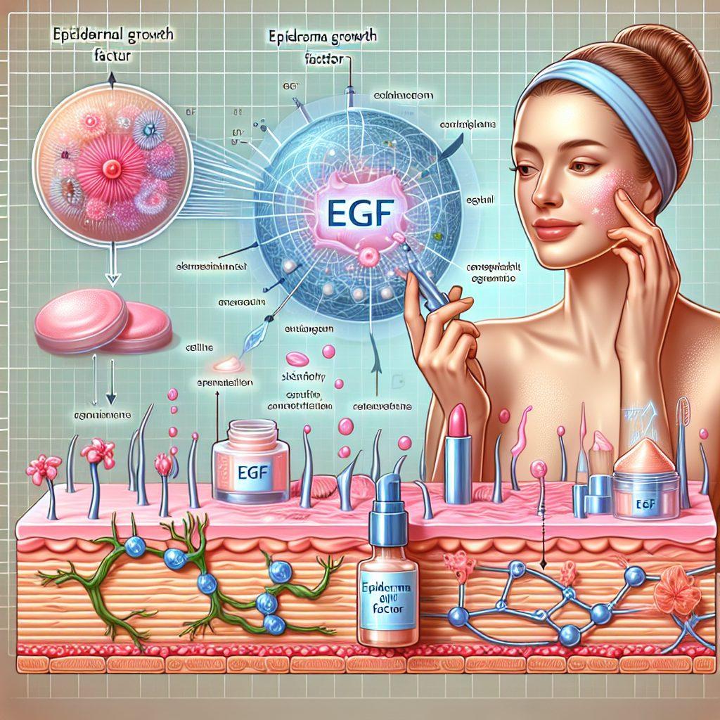 肌再生におけるEGFの役割について詳しく説明します。EGFは、エピダーマル成長因子として知られ、肌の再生を促進する重要な役割を果たします。具体的には、EGFは肌細胞の成長と分裂を刺激し、細胞の新陳代謝を活性化させます。これにより、肌のターンオーバーが促進され、古い角質が除去されると同時に、新しい細胞が生成されやすくなります。さらに、EGFはコラーゲンやエラスチンの生成を助けるため、肌の弾力性やハリを向上させる効果も期待できます。このように、EGFは肌の再生をサポートすることで、しわやたるみの改善、肌の明るさや透明感の向上に寄与します。また、EGFを含む化粧品を使用することで、傷や炎症の回復を早める効果も報告されています。特に、肌がダメージを受けた際には、EGFがその修復を助けるため、肌の健康状態を維持しやすくなります。しかしながら、EGFの効果を最大限に引き出すためには、適切な使用方法と製品選びが重要です。EGFを含む製品を選ぶ際には、成分の濃度や配合バランスに注意し、信頼性のあるメーカーの製品を選ぶことが推奨されます。
