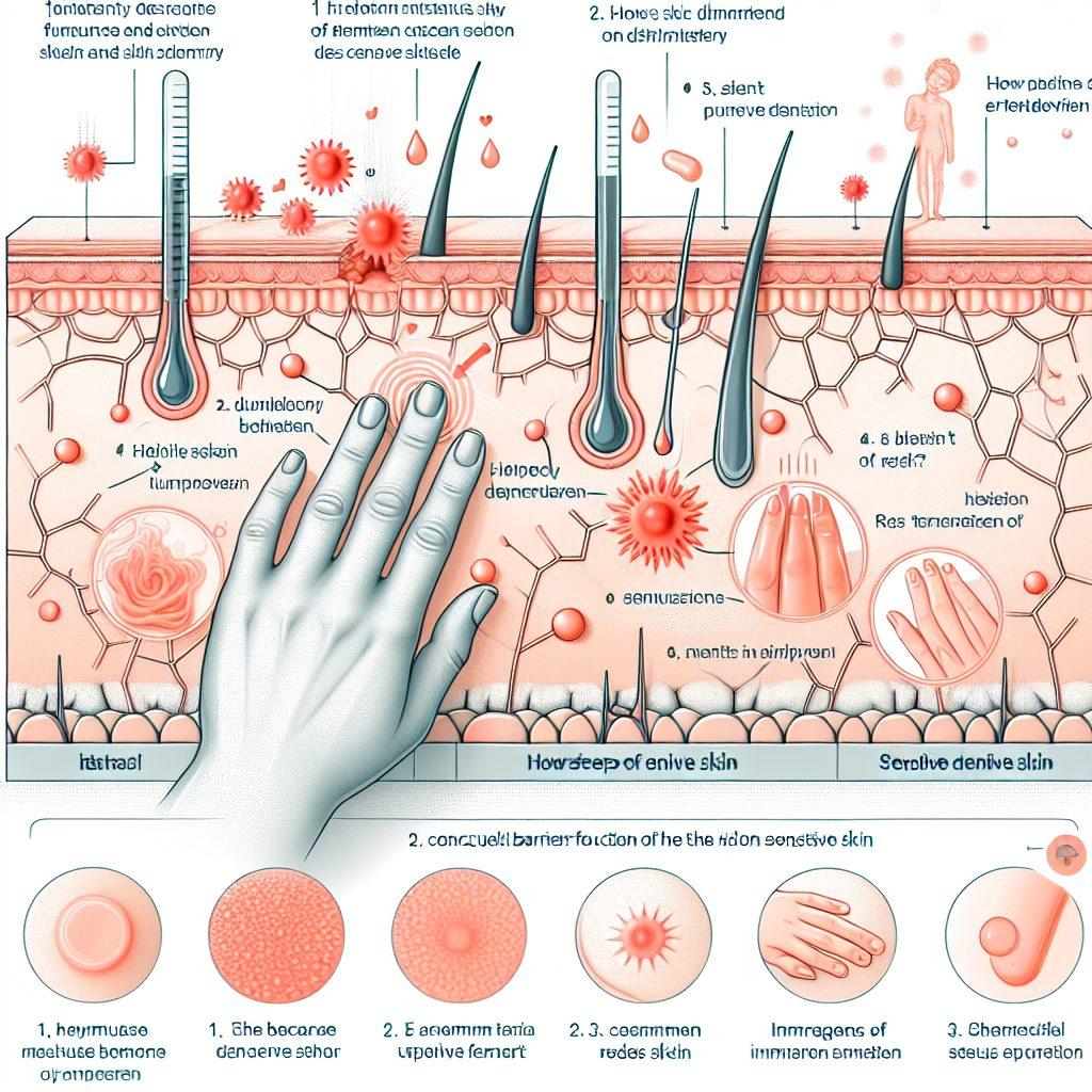 敏感肌とは、外部刺激に対して肌が過敏に反応しやすい状態を指します。通常の肌では問題とならないような環境の変化や化粧品の成分に対しても、敏感肌では赤みやかゆみ、ヒリヒリ感などの症状が現れやすくなります。敏感肌の原因としては、肌のバリア機能の低下が大きく関与しています。バリア機能が低下すると、外部からの刺激を受けやすくなり、また水分が蒸発しやすくなるため、肌が乾燥しやすくなります。このため、敏感肌の方は、特に保湿を重視したスキンケアが重要です。